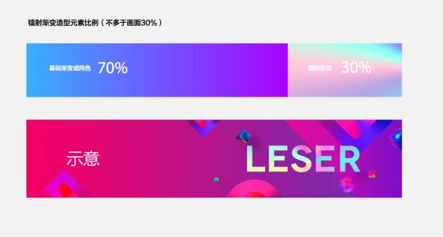 確定了視覺風格的主思路之後,就是反复的嘗試。因為設計師發現一個問題,鐳射這個元素很炫酷,但是也很難駕馭,所以要保持克制,要high也要有原則。就有了不超過30%的畫面佔比這個視覺原則。而在應用上,我們可以感受到這種撲面而來的歡樂,這就是節日該有的樣子。